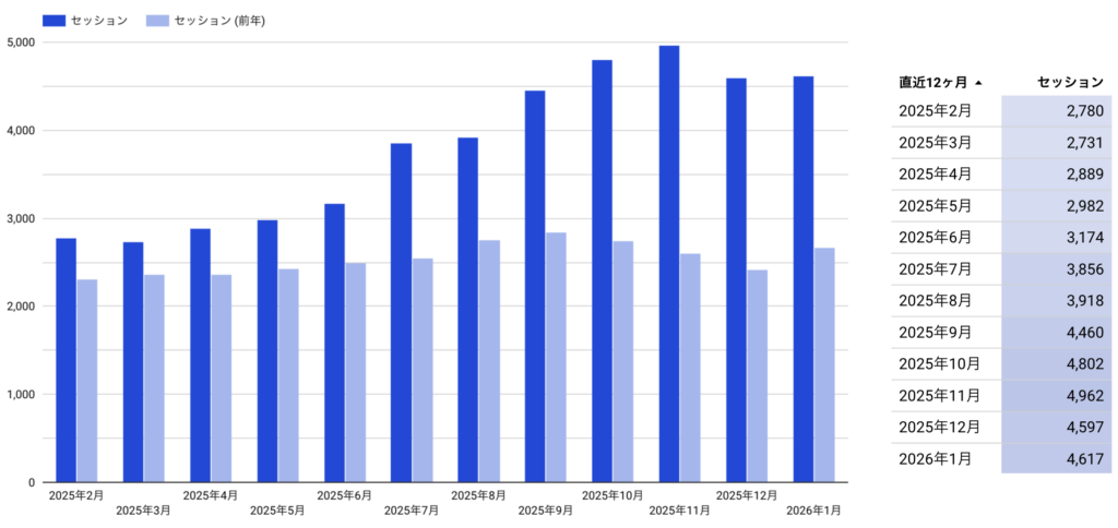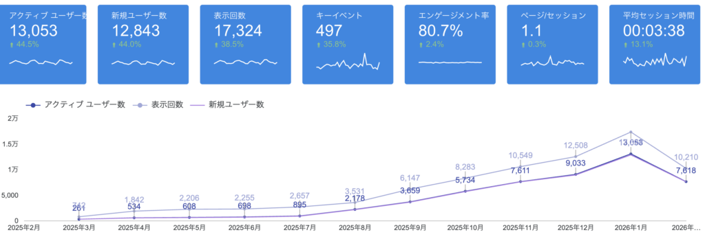 自動レポートツールは、Google Analytics(GA4)などのデータを自動で集計し、アクセス数やセッション、ページビュー、直帰率などを手軽に確認できる点が特徴です。