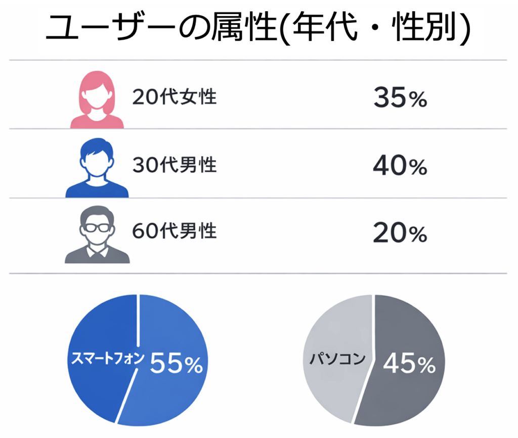 ユーザー属性を把握することは、ホームページ全体の方向性や改善策を考えるうえで、重要な判断材料となります。