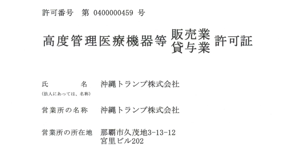「高度管理医療機器等販売業・貸与業許可証」を取得しました